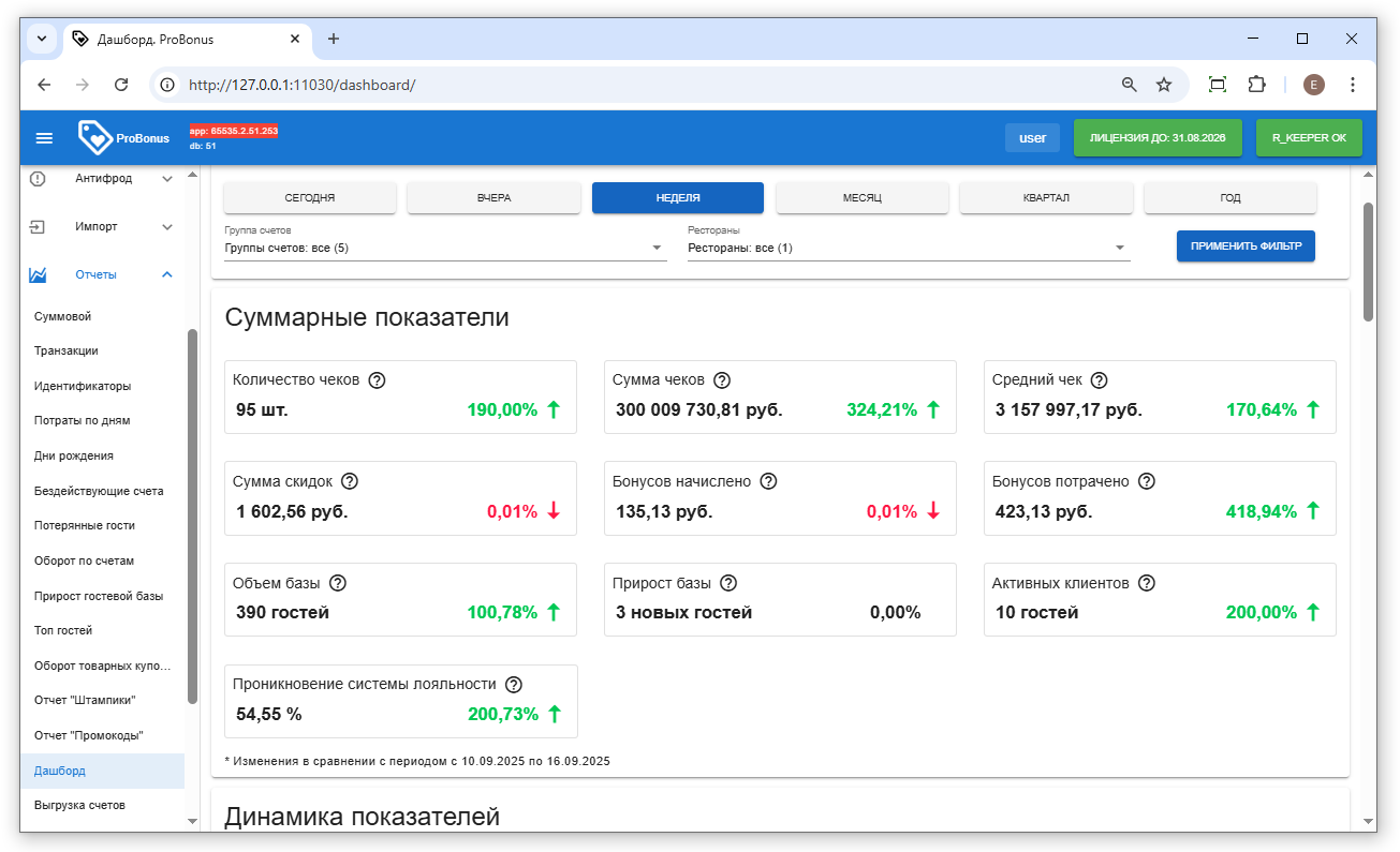 Отчёт «Прирост гостевой базы» доступен в от версии ProBonus 1.2.18.112.
