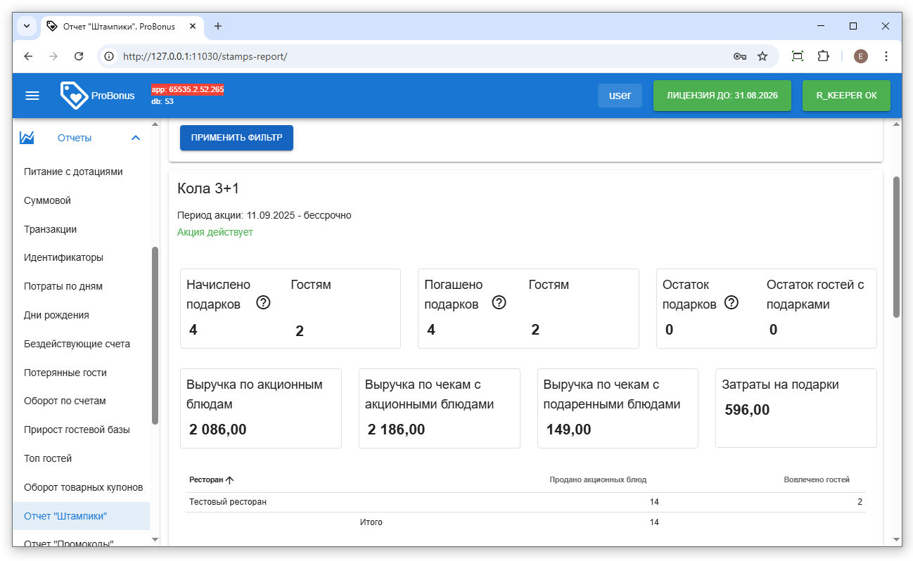 Отчёт «Штампики» доступен в от версии ProBonus 1.2.34.192.