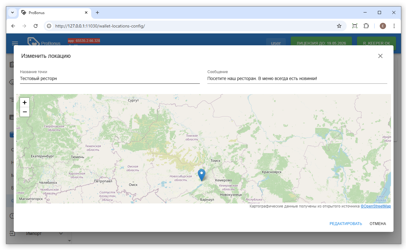 Создать метку можно через кнопку добавления локации. Если метка уже есть, то её можно отредактировать или удалить.