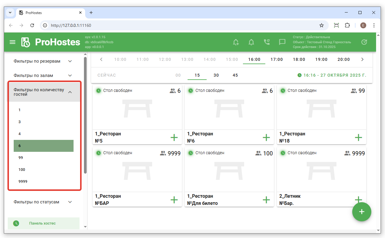 Например, можно показать только столы, доступные для посадки десяти гостей и более.