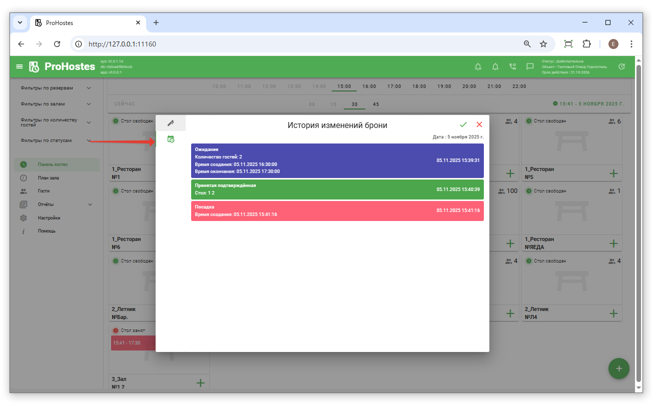 В ProHostes v1.10.7.98 добавлена возможность просматривать завершенные брони.