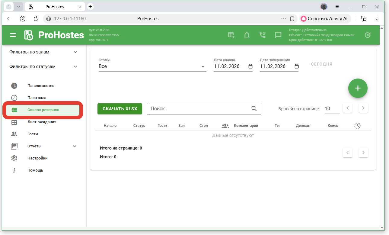 В этом разделе также доступна функция «Умное бронирование» — она позволяет быстро создать новую бронь. Подробное описание работы с этой функцией доступно по ссылке: Подробнее тут.