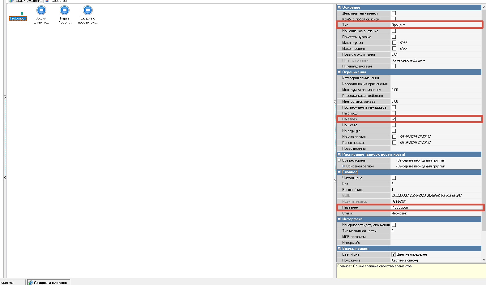 Настройка скидок