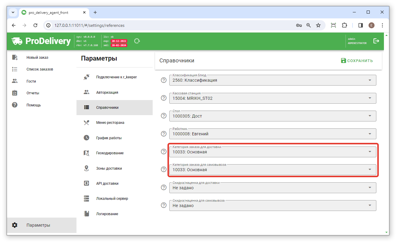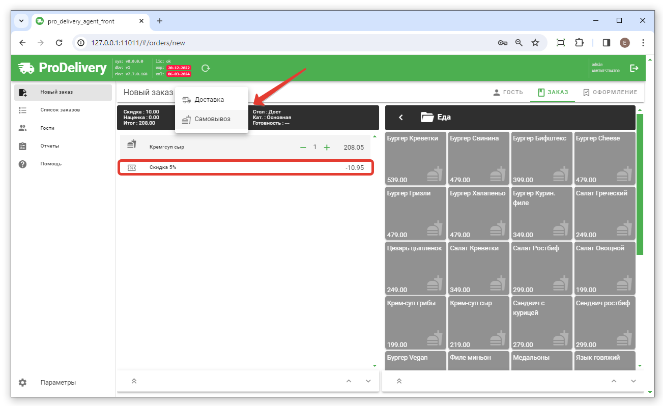 Цена остаётся Основной, но для доставки и/или самовывоза нужно применить наценку и/или скидку