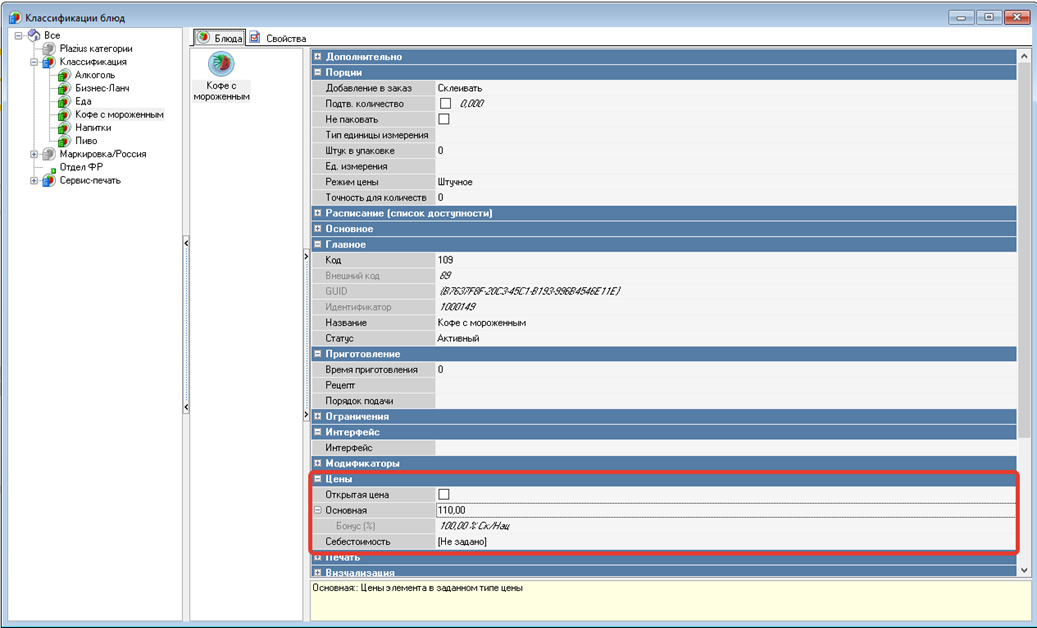 Под ручным формированием цены подразумевается индивидуальная установка цен, для каждого блюда в классификации.