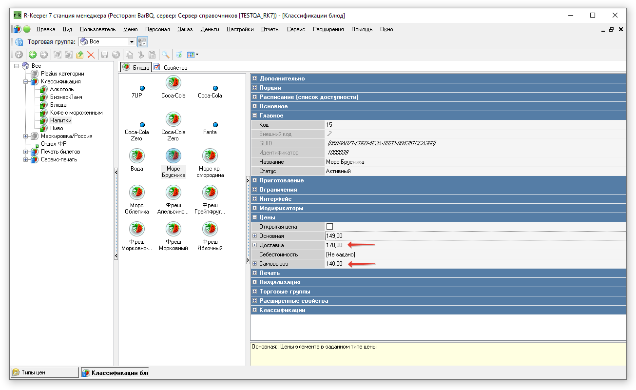 Цена формируется вручную из rkeeper