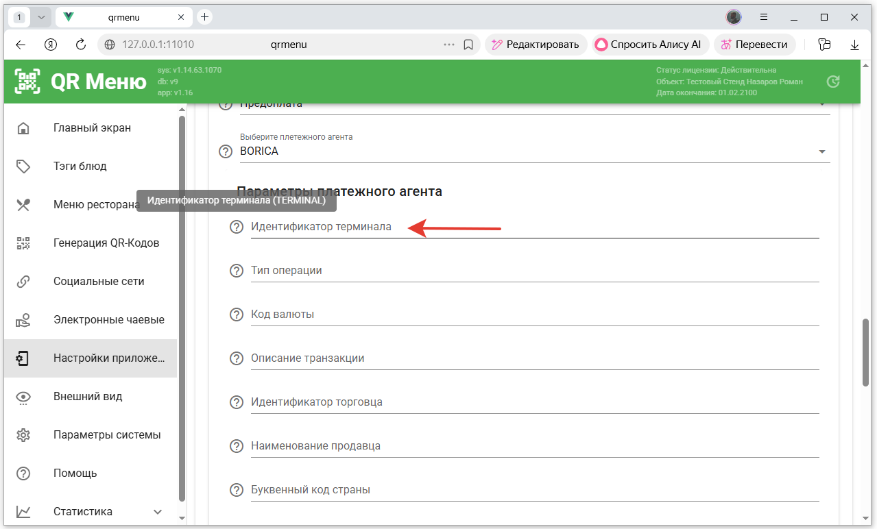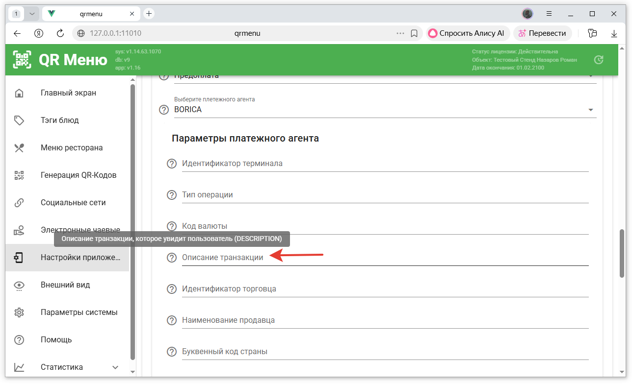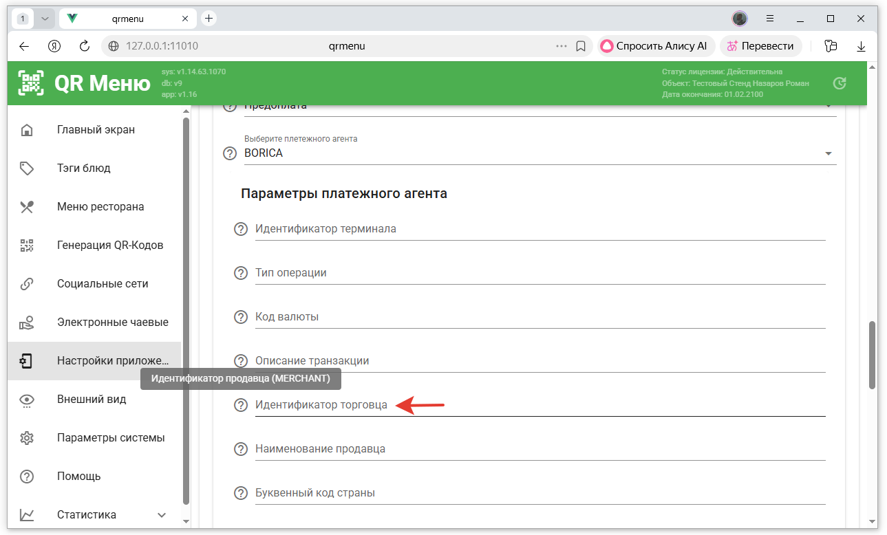 - В настройках приложения QR-Menu включить онлайн оплаты