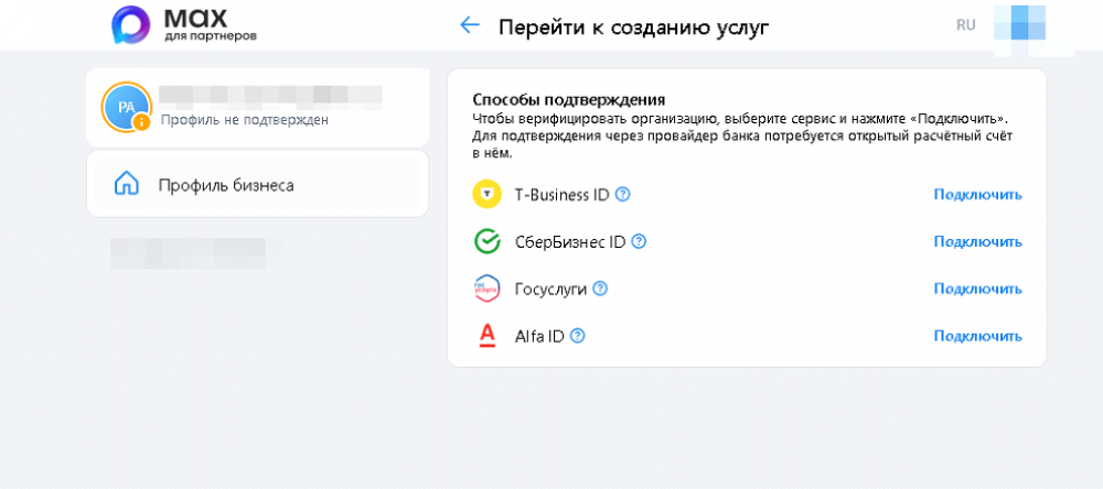 2. Далее нужно будет подтвердить аккаунт юридического лица через банк или Госуслуги.